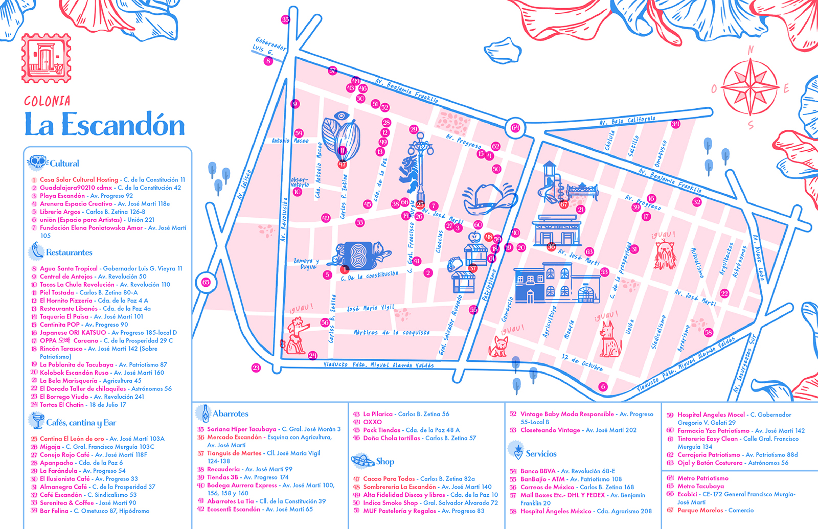 This project was developed for a neighborhood located in Mexico. It was a fun process to explore the references the client shared—specific places, local dynamics, and everyday details that made the area truly unique. The goal was to create an illustrated map designed for risograph printing, intended to be shared with visitors staying at the client’s hosting. The final piece captures the character of the place through a friendly, accessible visual language.